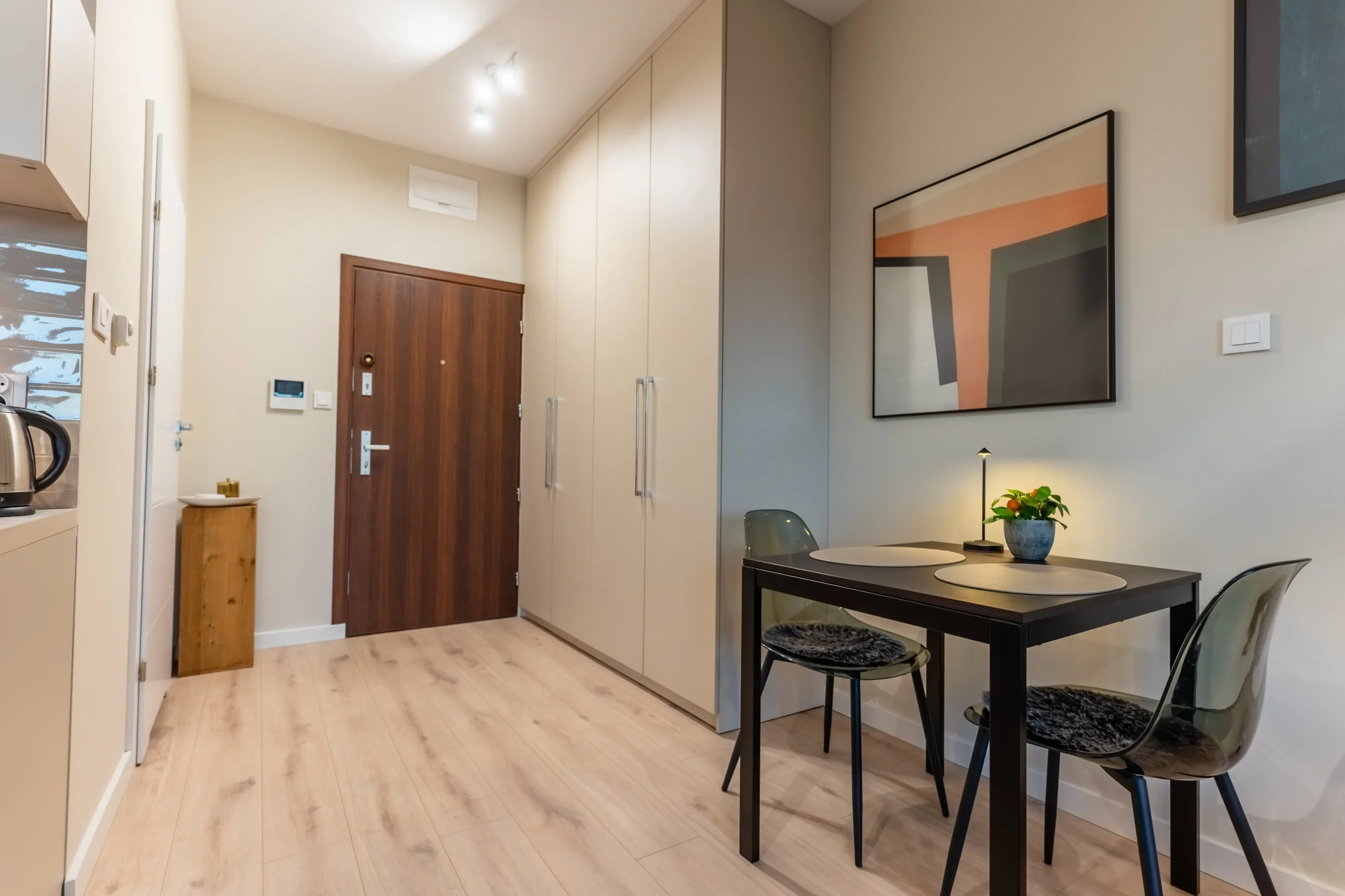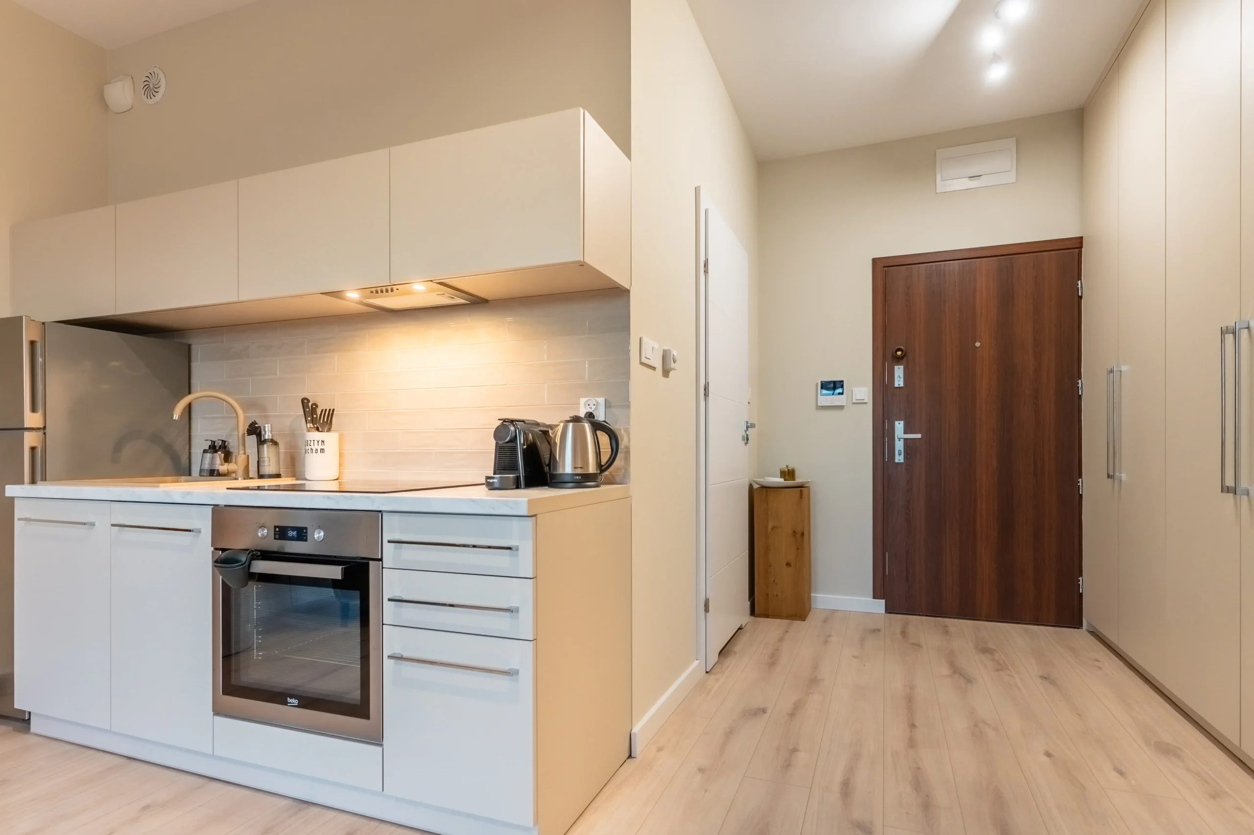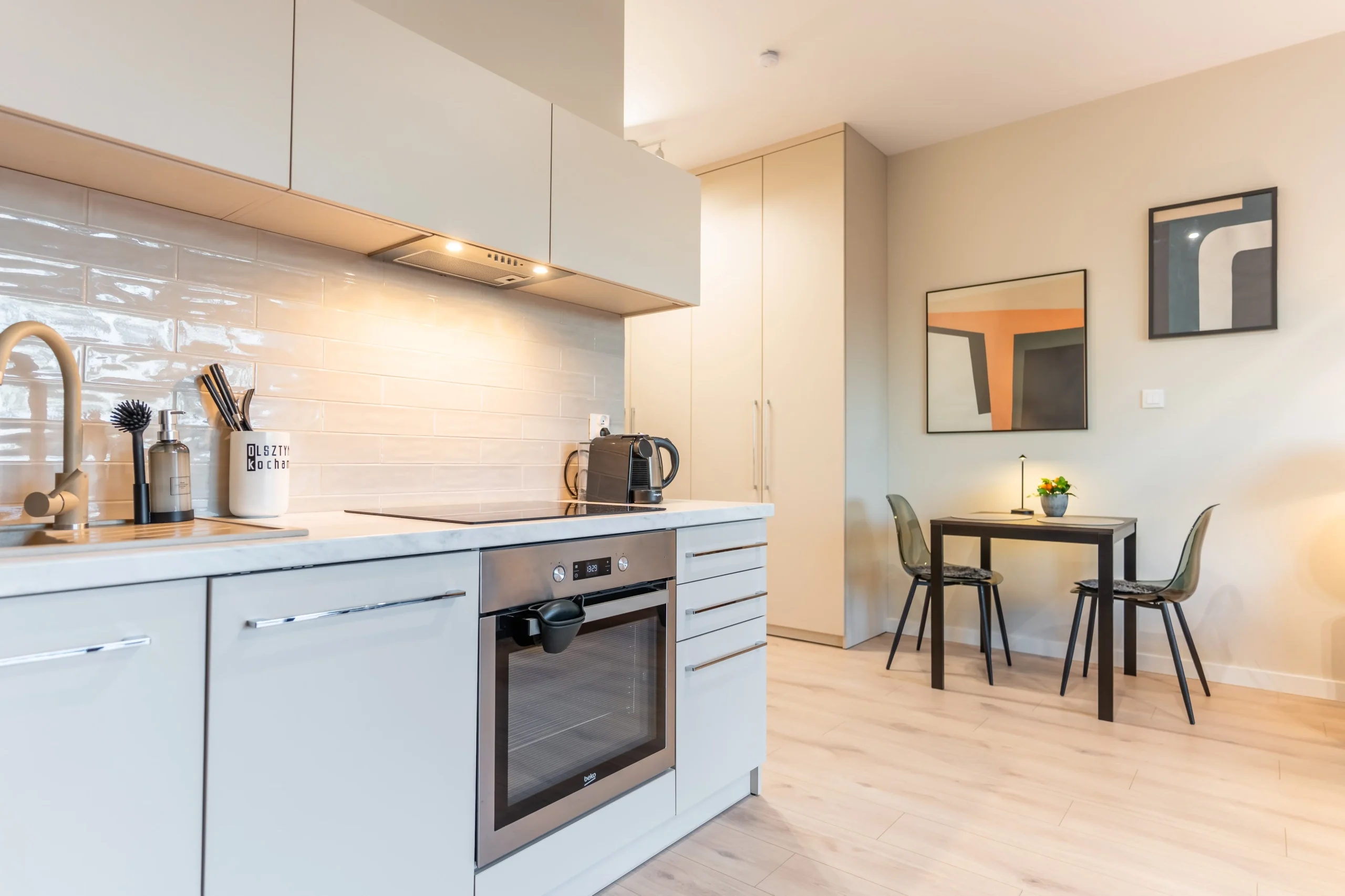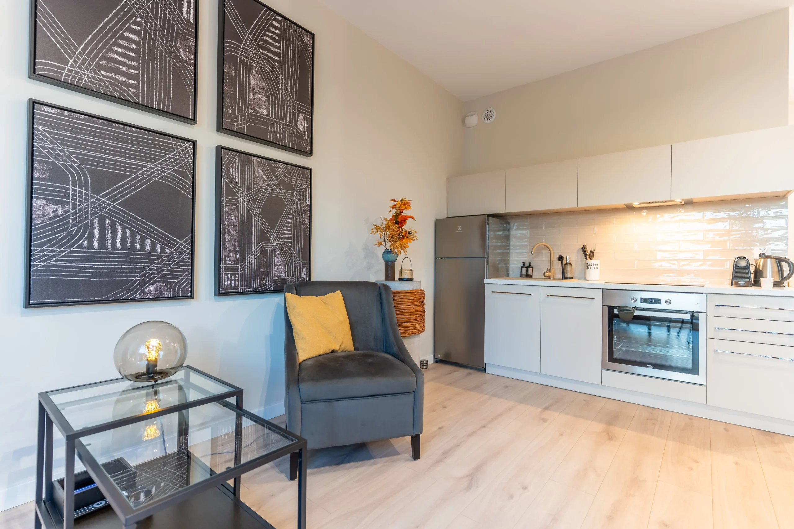 Przyjemna przestrzeń z wydzielonym salonem i aneksem kuchennym