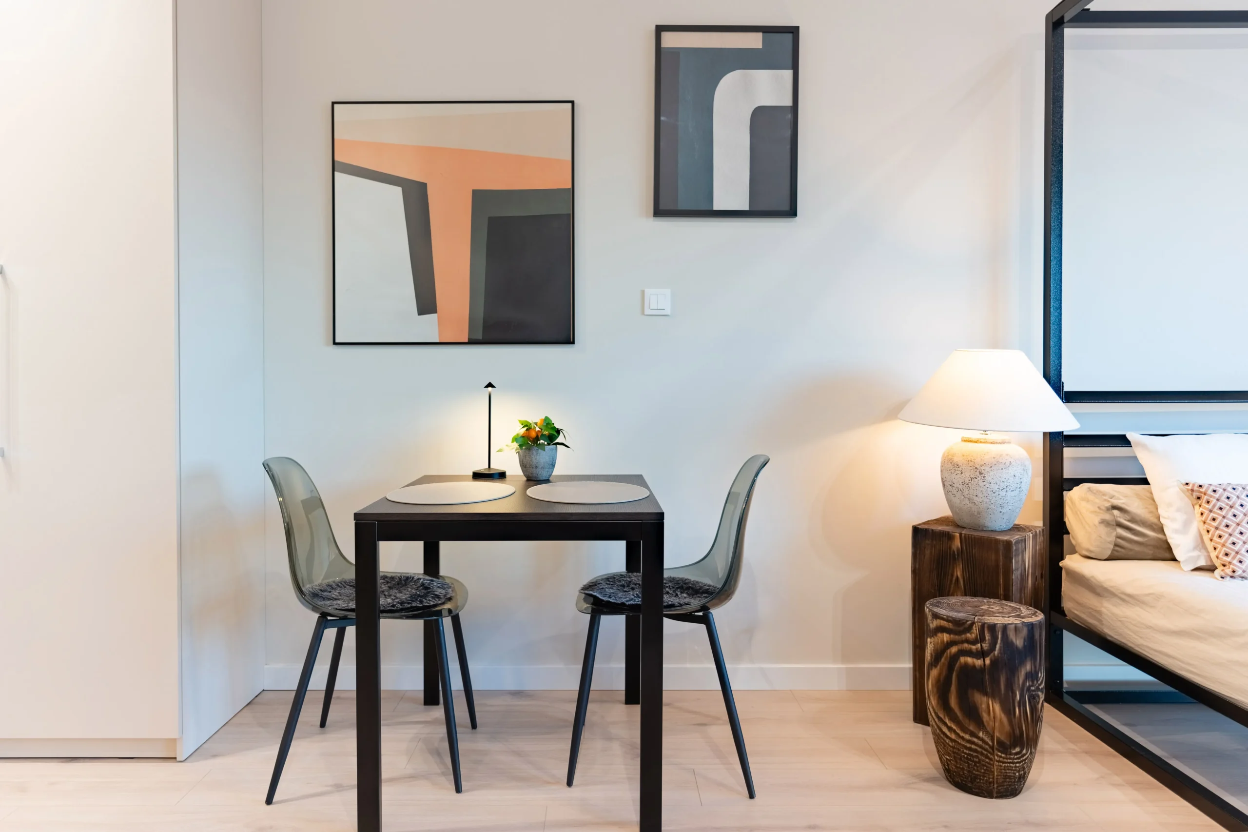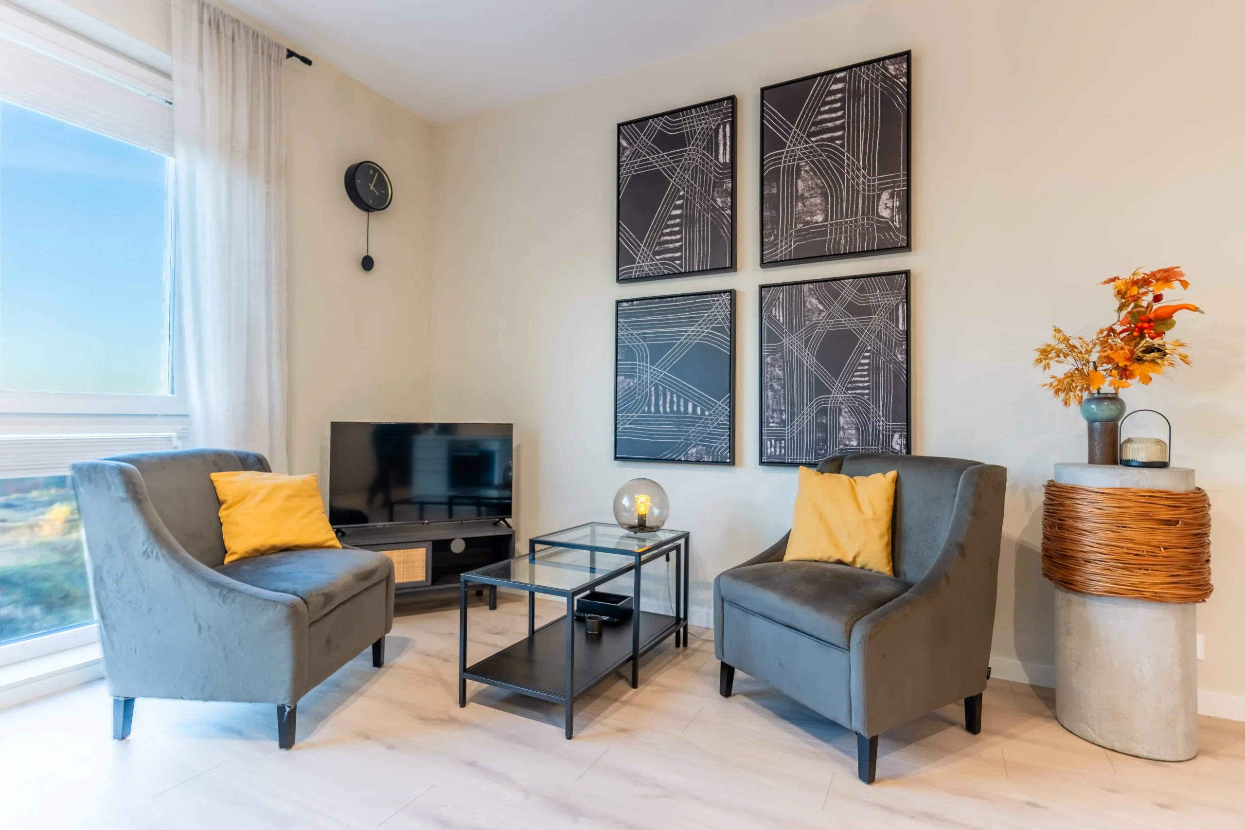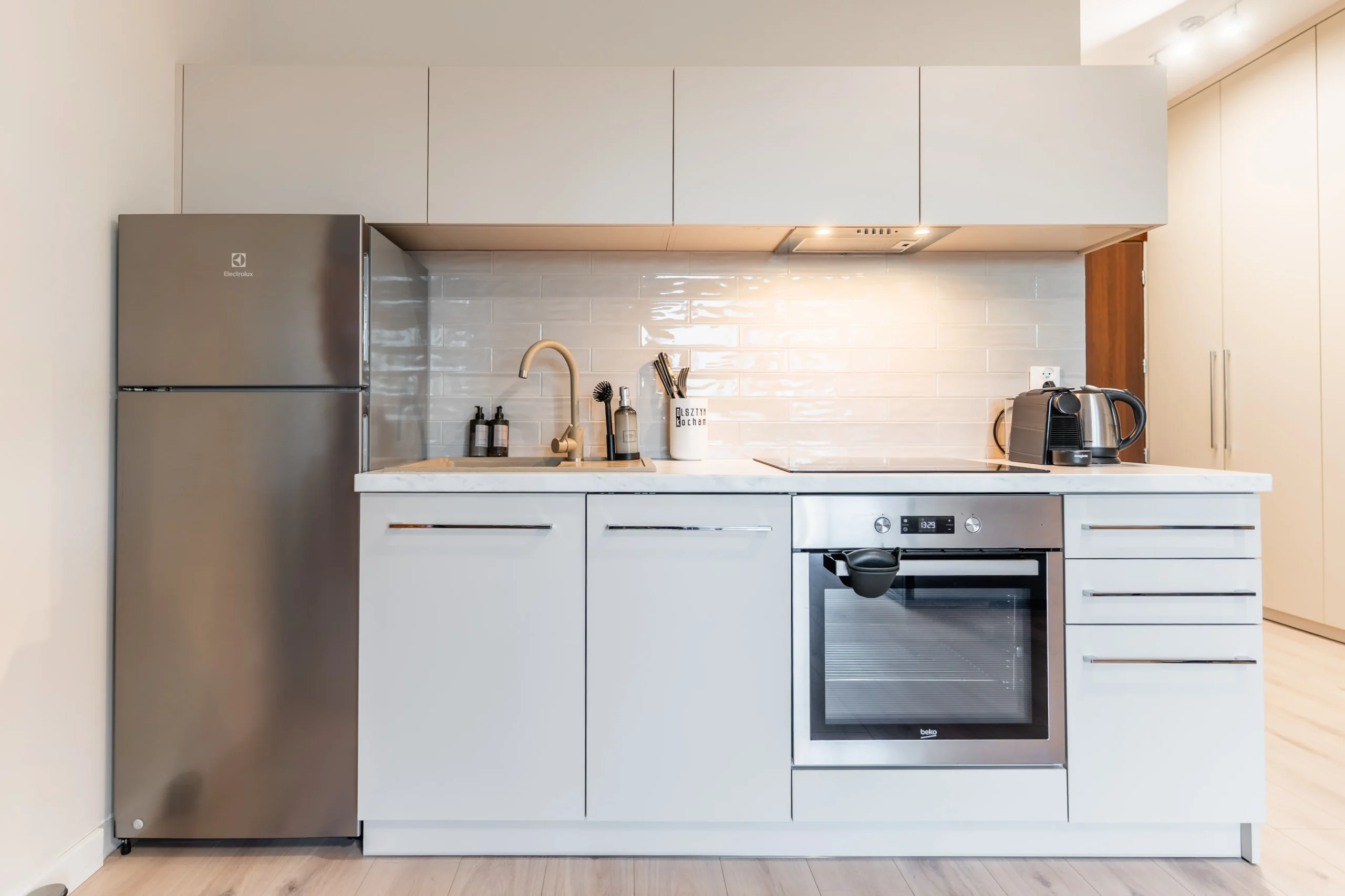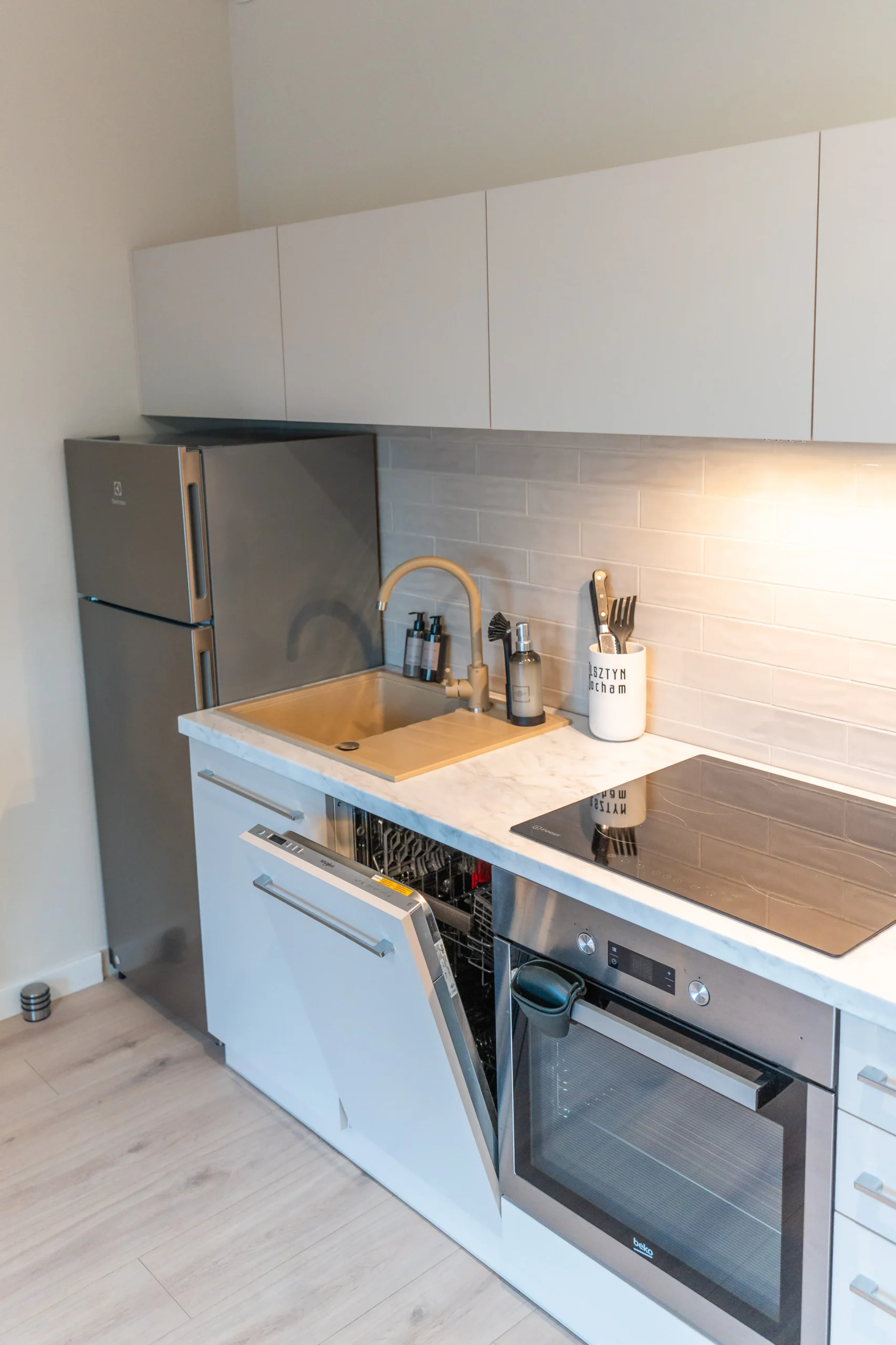 Przyjemna przestrzeń z wydzielonym salonem i aneksem kuchennym